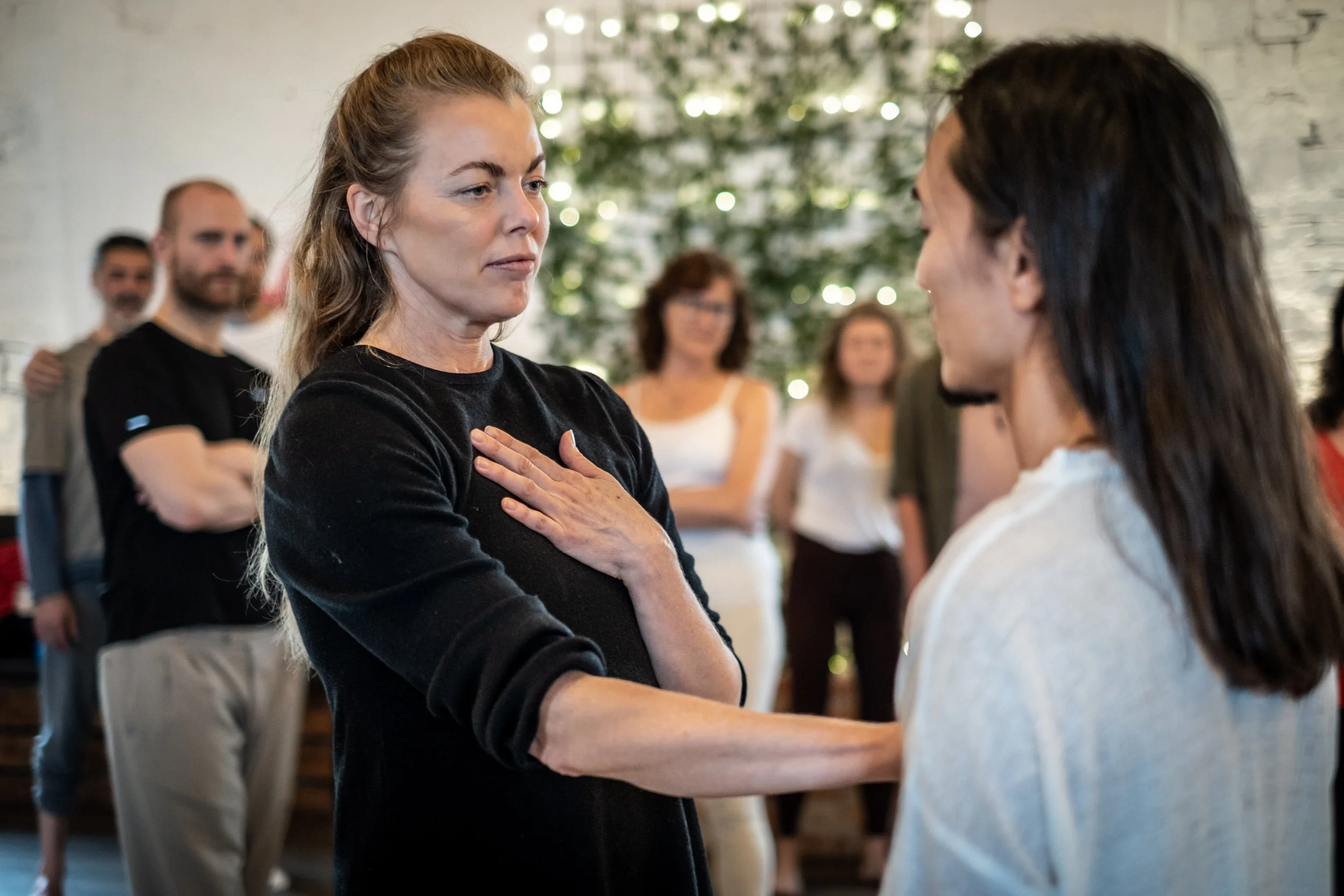 The assistant team typically runs at a ratio of one assistant to every four or five participants — a deliberately high level of support for a training of this depth. Every assistant is trained, experienced in this work, and selected for their emotional maturity and embodied understanding of the methodology. They are present not just during sessions but in the spaces between them, available throughout the ten days for whatever arises.